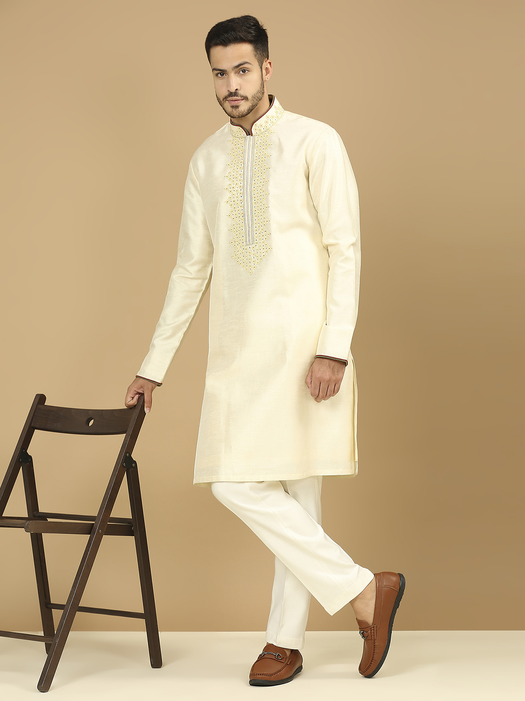 Gold Brocade Jacket & Cream Kurta Set