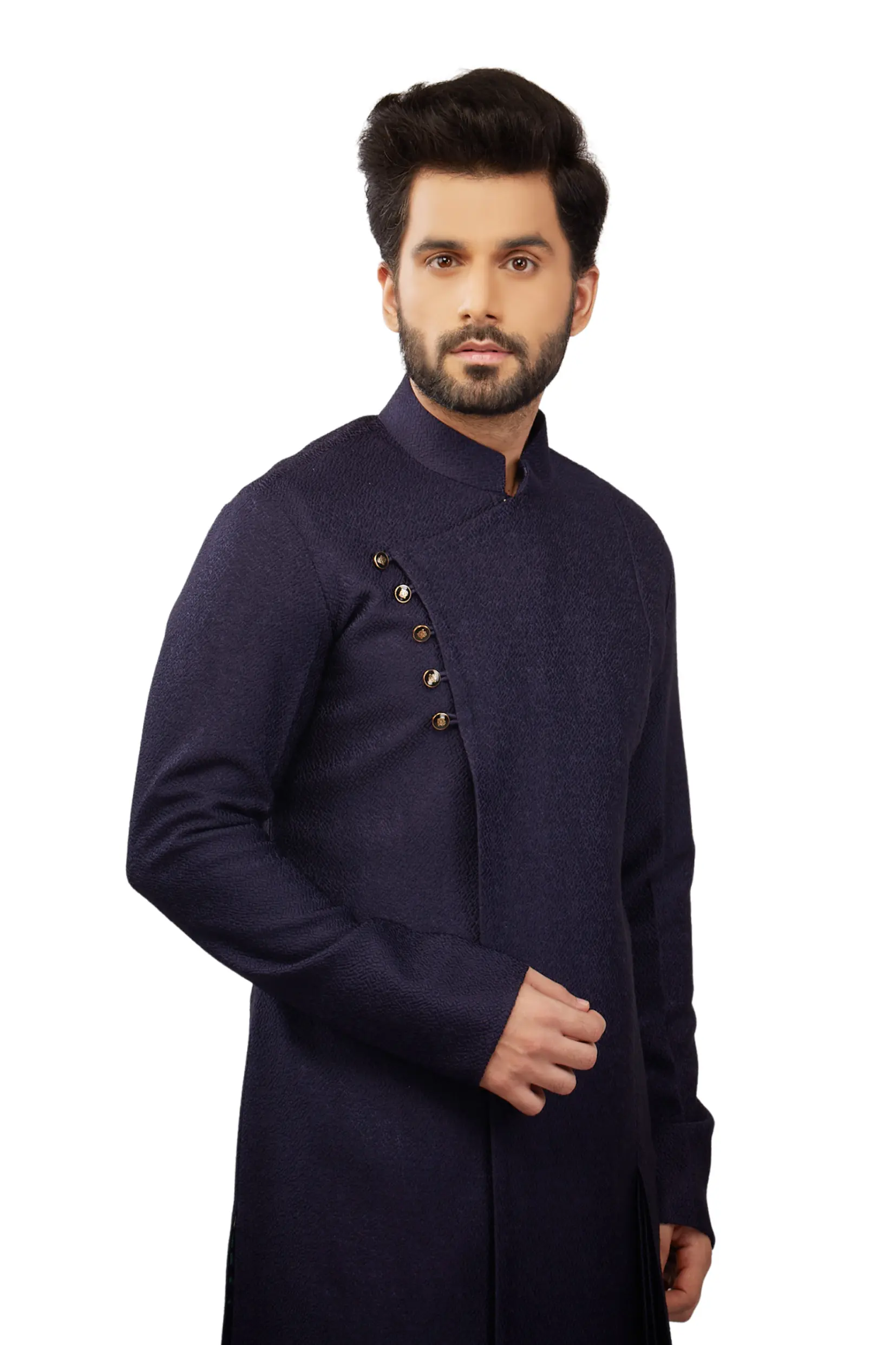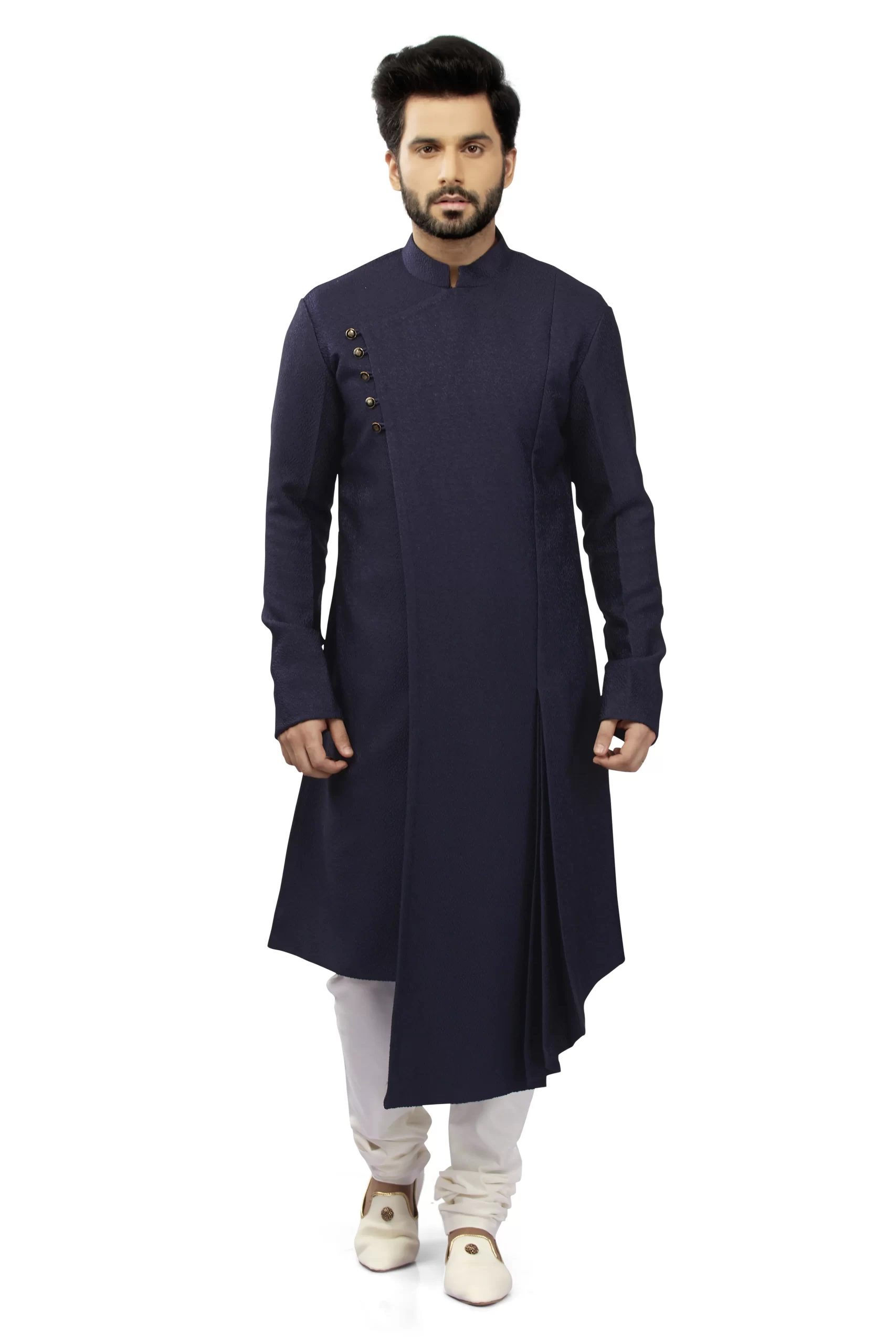 The knight in charming armour in this midnight plain blue drape kurta is an amalgamation of style and comfort!