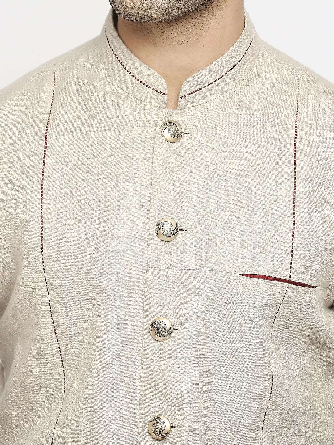 Introducing our luxurious beige rajneeti kurta paired with bold red cowl dhoti pants. Intricate embroidery and detailing add elegance, while the fusion of comfort and style makes this a must-have for any occasion.