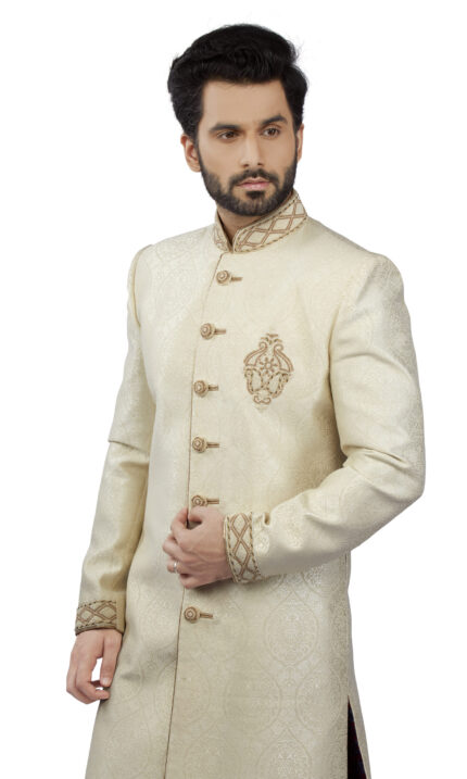 Sherwani: Textured Suiting I Aligarhi: Cotton