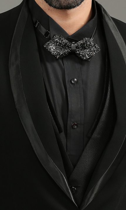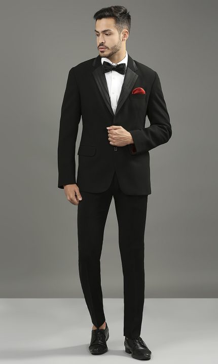 Black Oval Lapel Tuxedo with Satin Detailing Set