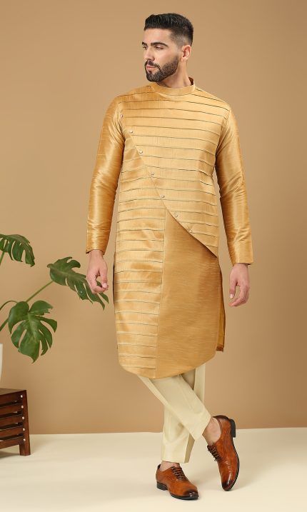 Gold Angrakha Style Kurta Set